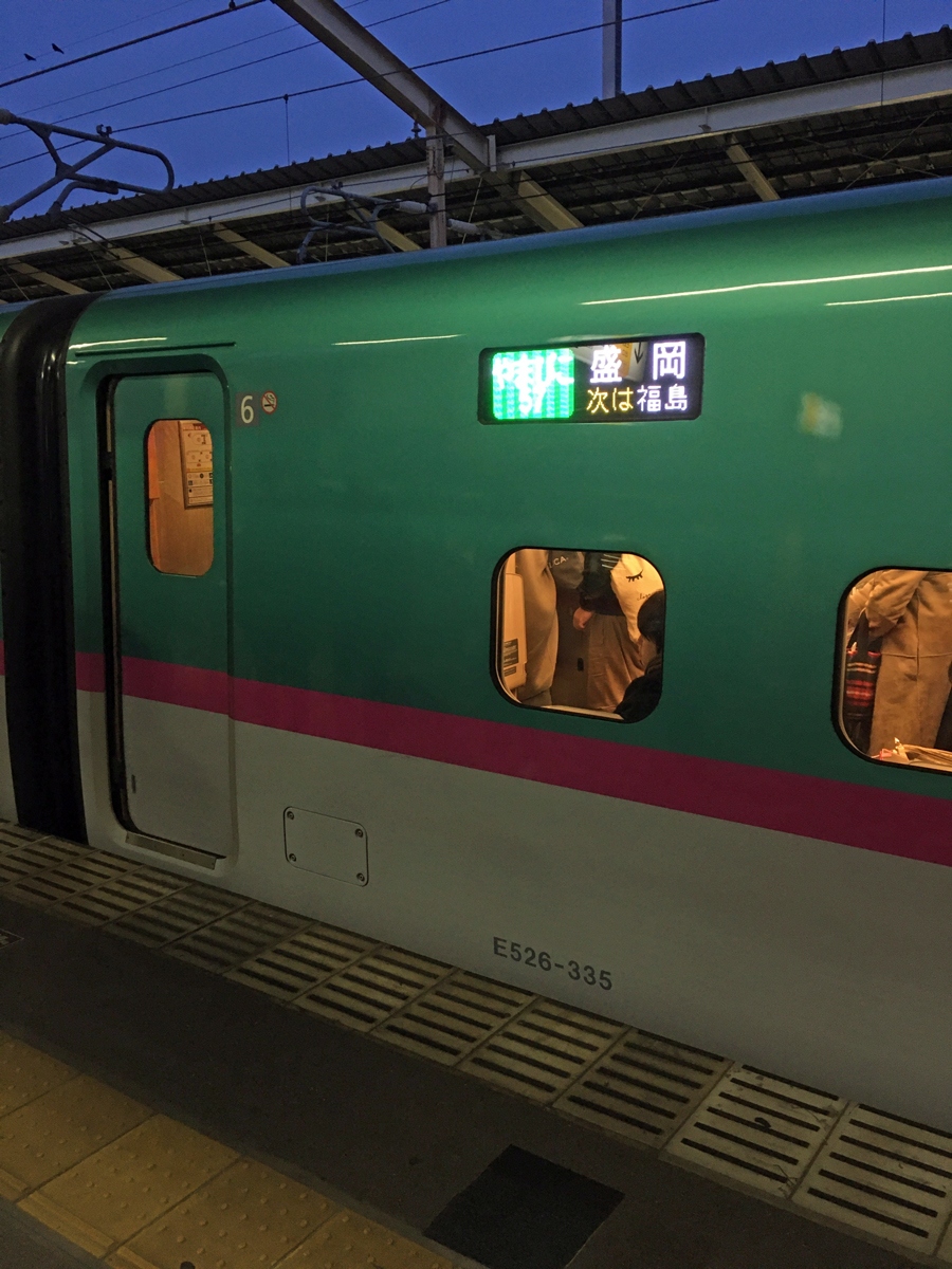 関東と東北地方の福島・仙台・盛岡・新青森を結ぶ東北新幹線。今回は、会津観光の後仙台空港へ向かうため、郡山17:02発 やまびこ57号 U35編成を仙台17:37着まで利用しました。この区間は在来線の東北本線も選択肢としてありますが、30分ほどで仙台へアクセスできるのは非常に便利でした。またこの列車に使用されていたE5系は、東海道・山陽新幹線のN700系の世代に当たり、快適性も非常に向上していました。