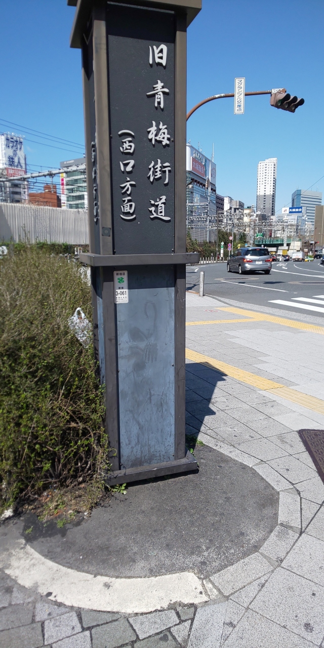 新宿にある旧青梅街道の始点です。東口側と西口側にありますが、そのうちのひとつをみてきました。