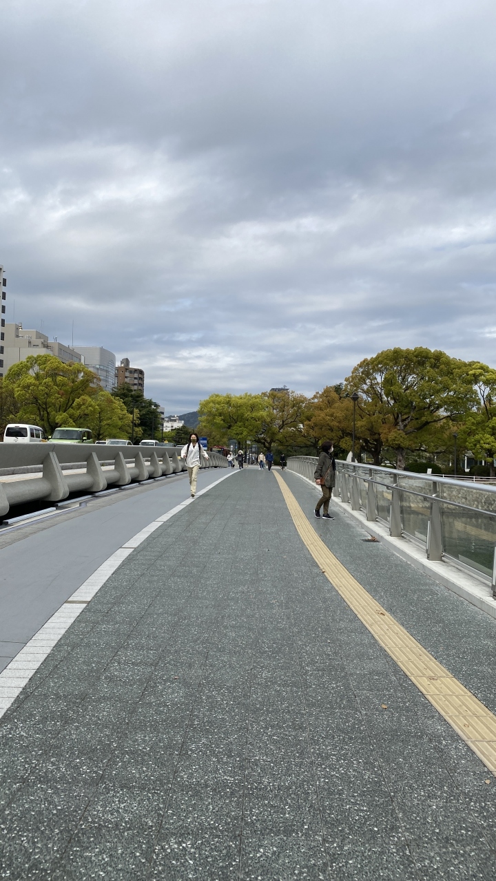 平和記念公園の前を通る平和大通り。イサム・ノグチの橋もありますし、この道沿いにはANAクラウンプラザホテルやザノットなどホテルも多数あるので、観光客も多い通りです。この通り沿いにはバスもあるので、移動はバスも便利です。また、お菓子屋さんもこのエリアには多くわたしの地元の銘店神戸風月堂まであったのにはびっくりしました。
