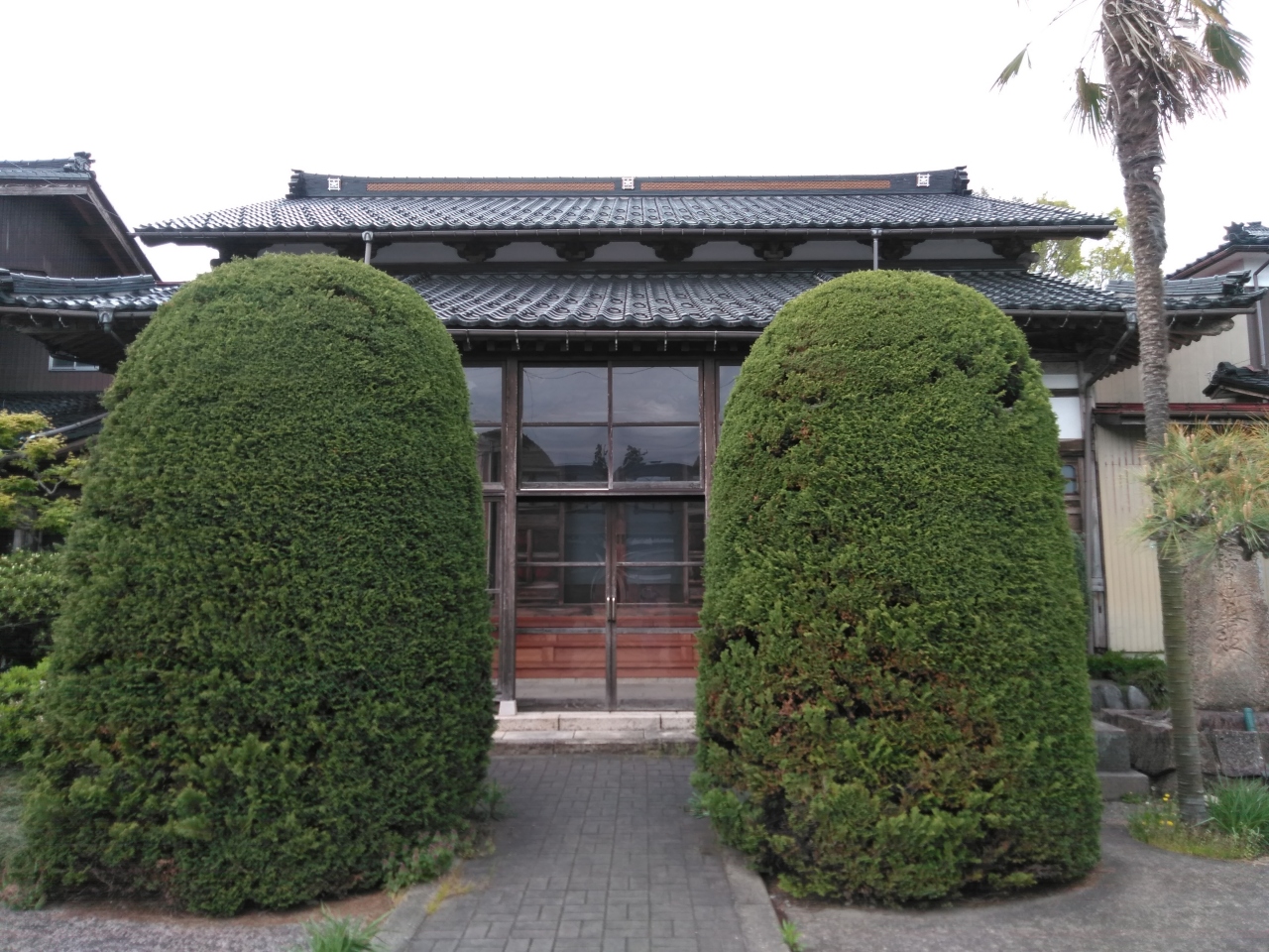 境内に駐車スペースがあります。本堂の前の、丸くこんもりと刈られた植木が印象的でした。戸は閉まっていて、中を覗き見る事は出来ませんでした。村上市観光ガイドには「鳩がいます」とありましたが、見当たりませんでした。