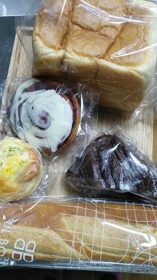 食パン、バゲット、チョコパン、シナモンロール、コーンとハムでした。
