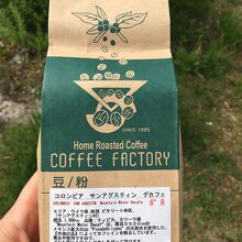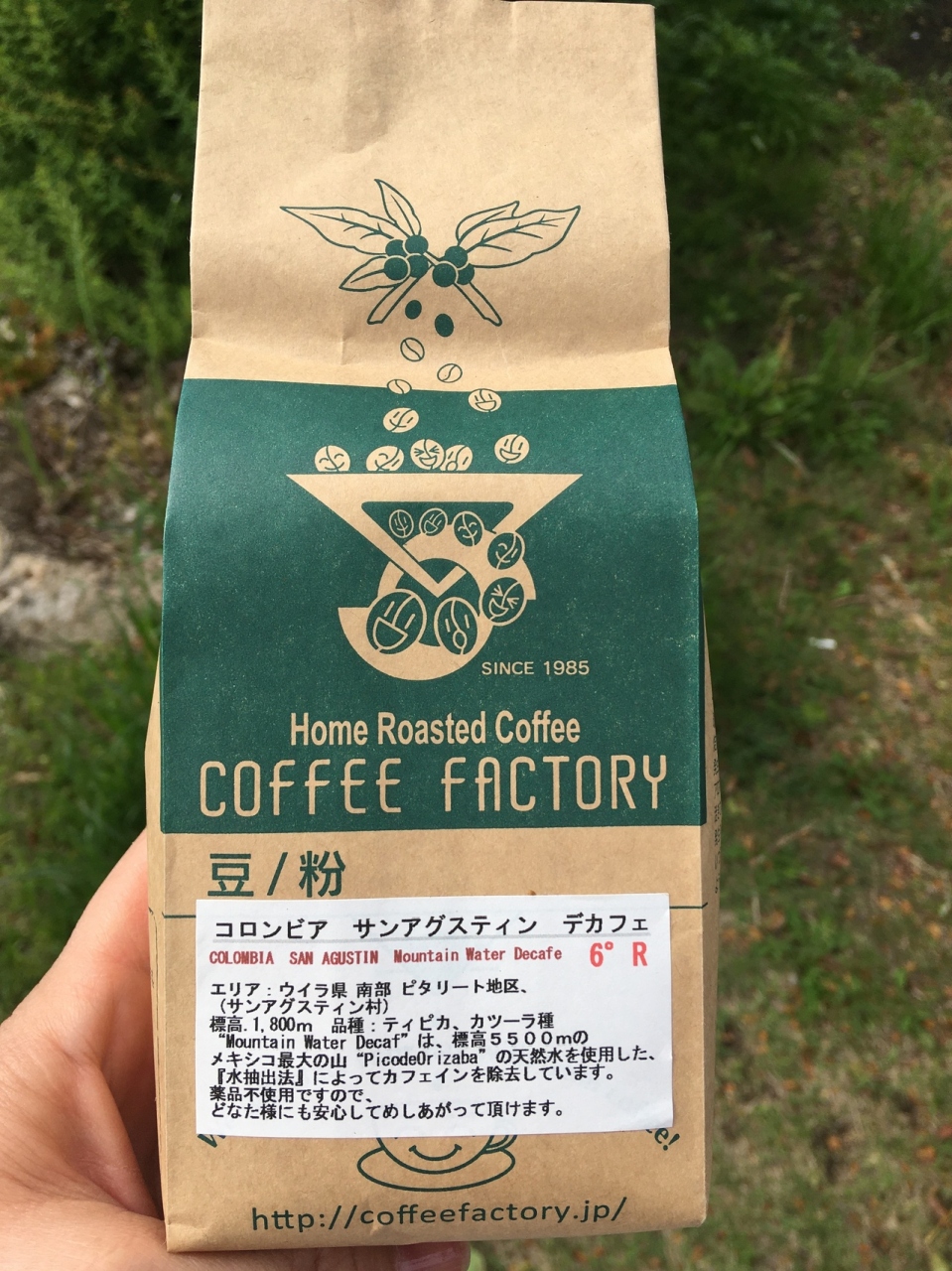 お目当てのデカフェはコロンビアで香り控えめのソフトな味でした。豆を200gの購入でコーヒーが一杯サービスになりました。