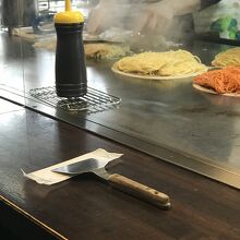 11時の開店前に行ったが、駐車場はすでに満車。カウンターは開店と同時にほぼ満席。流石ミシュラン掲載店。店内は昔ながらのお好み焼き店の雰囲気。お好み焼き作りを見るのも楽しい。