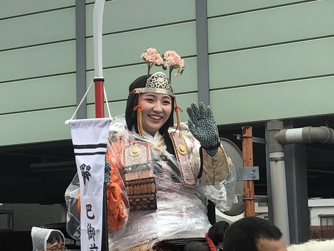 多田神社の春季例大祭の神賑行事として執り行なわれているようで、鎧や兜に身を固めた満仲公を始めとする源氏ゆかりの武将や、巴御前、武家姫君、少年少女武者等、子供みこしや稚児行列も加わり、桜吹雪の舞うもと、絢爛な時代行列となっています。