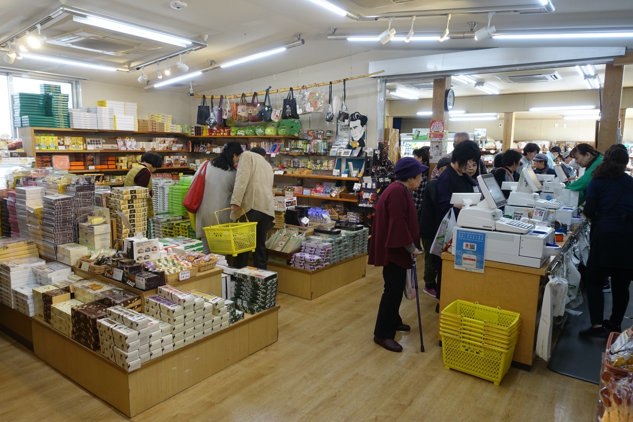 農産物では庄内産の梨やかぼすが置いてあり、お土産も「由布院」と名前の入った物や県内の有名なお土産ならここで買えます。やはり店内もあまり広くはなく、空港の売店と比べると品揃えに差を感じてしまいました。支払いにクレジットカードが使えるのは良かったです。