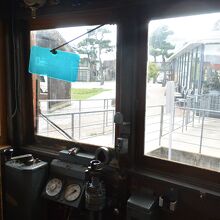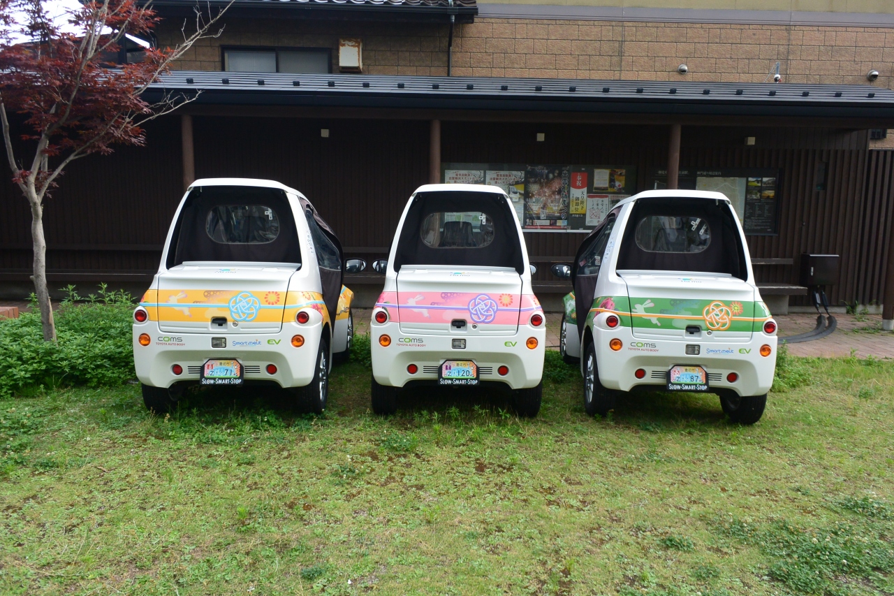 一畑電車出雲大社前駅のすぐ横のあるきれいに整備された広場です。何に使用されるのかわかりませんが、かわいい塗装の小さなEV車が停まっていました。一畑電車の古い車両が展示されており、中に入ることができます。中井貴一さん主演の「RAILWAYS」という映画にも使われたようで、社内にポスターなども飾られていました。電車の待ち時間などに見学するとよいと思います。