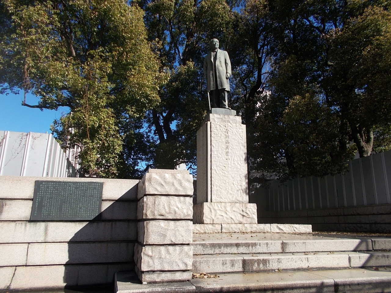 この渋沢栄一銅像は日本橋川のほとりにある徳和橋門があった場所で今は常磐橋公園になっている場所に立像としてたてられています。この像の東側で日本橋川の向こうには日本銀行があります。日本の近代的な資本主義を進めた人物の存在をより高めています。