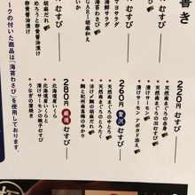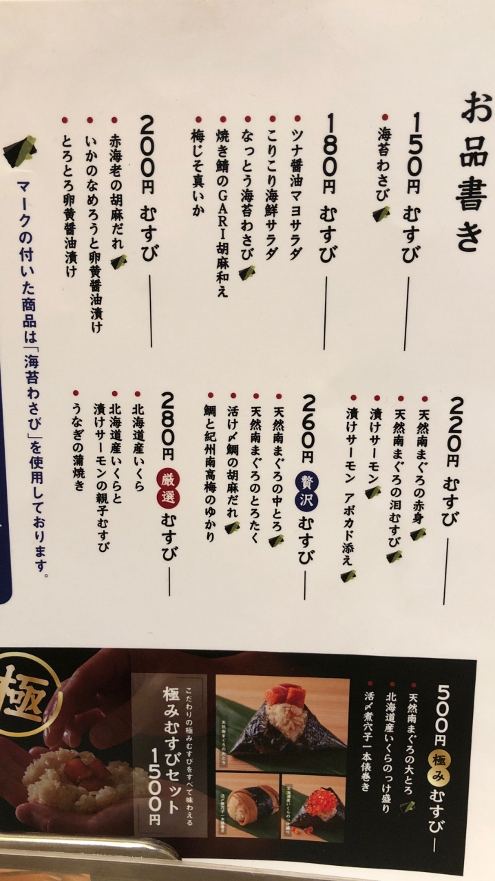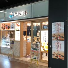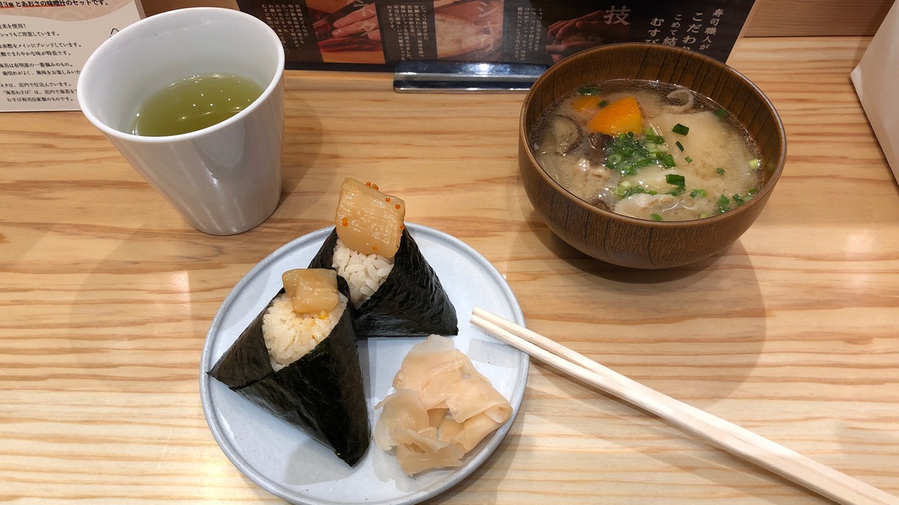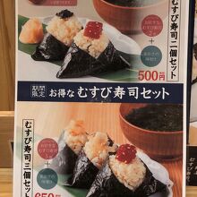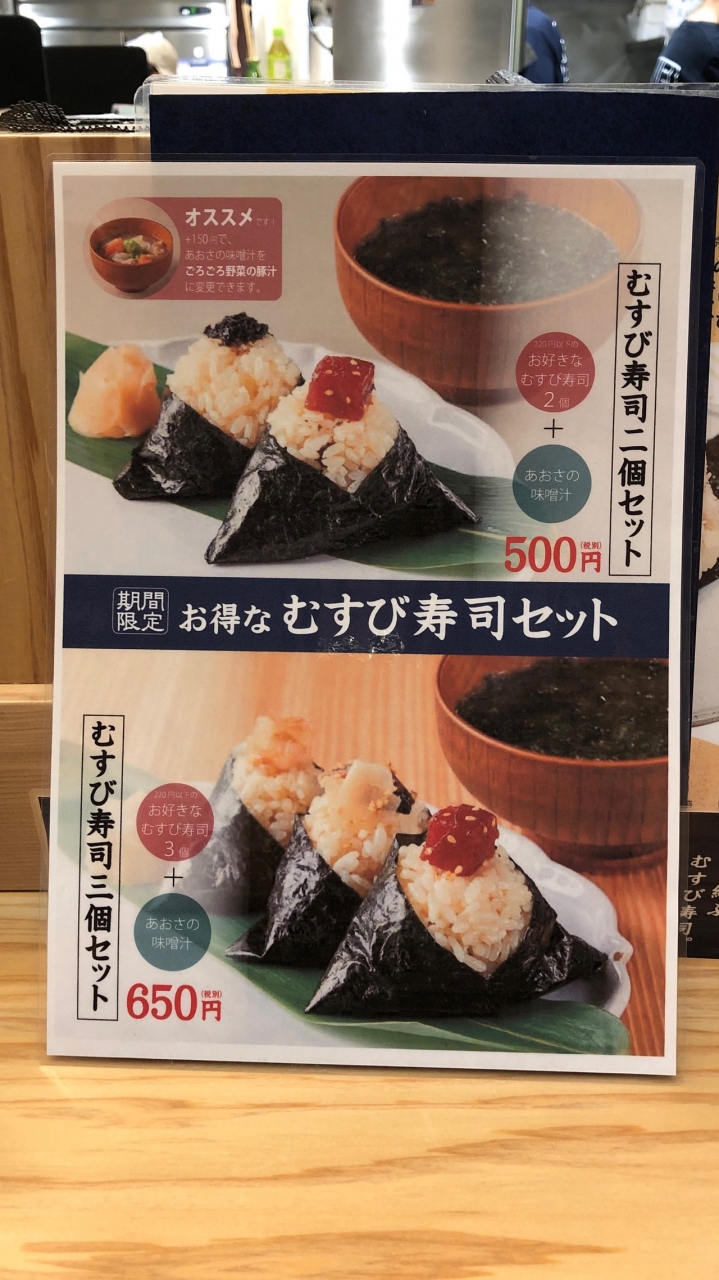 南海難波駅3F改札内にあります。見た目はおにぎりですが、ごはんが酢飯、具は魚介系が多いなど、味はお寿司です。むすび寿司3個・あおさ味噌汁セットが650円と、お手頃価格です。少し色の付いた酢飯は、薄味・甘めでおいしかったです。店内は、カウンターのみ10席ほどです。