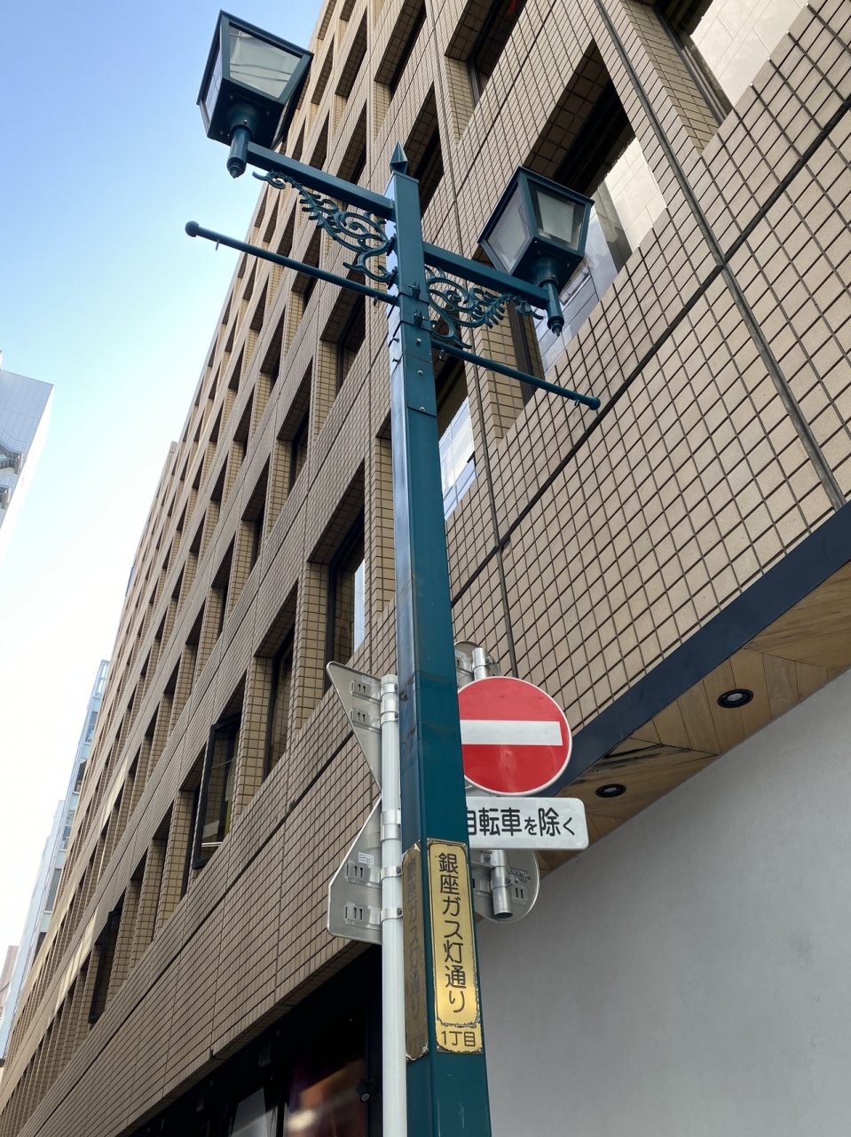 銀座といえばガス灯が有名です。この日は昼間だったので、その灯を見ることは出来ませんでしたが、外灯の柱に「銀座ガス灯通り」と明記されていて、何とも風情を感じさせられます。通りは一方通行の細い道路になっていて、路面はレンガ敷き。散策するのも悪くありません。
