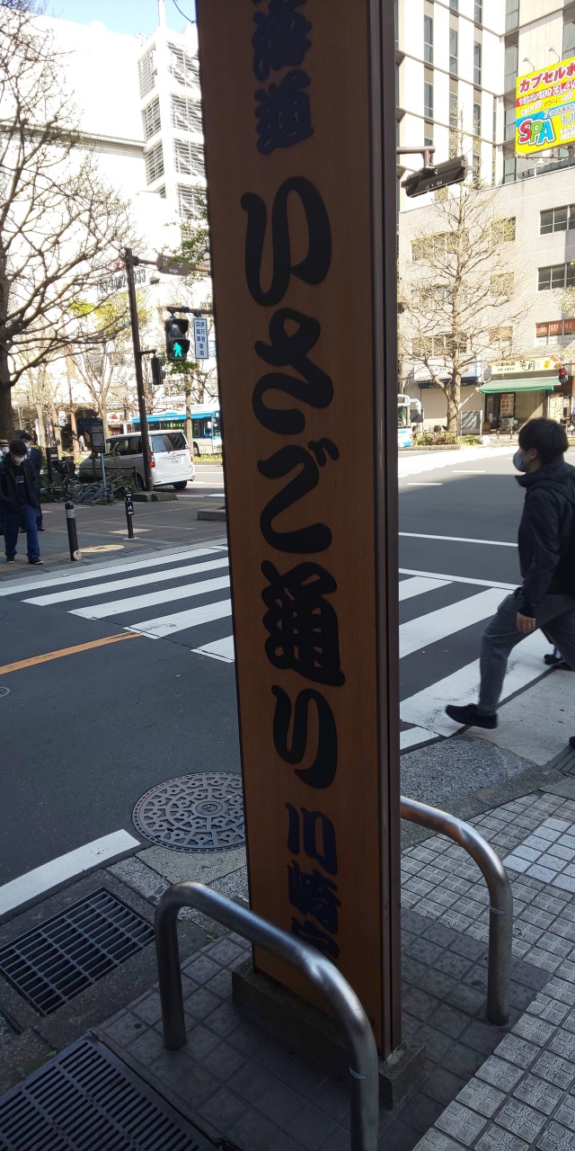 車道も一車線ずつあり、車の通りも多い通りとなっています。ちなみに旧東海道でもあった通りです。なので通りの始まりには川崎宿と書いてある柱があり、川崎宿を観光化しようと努力しているのがわかります。