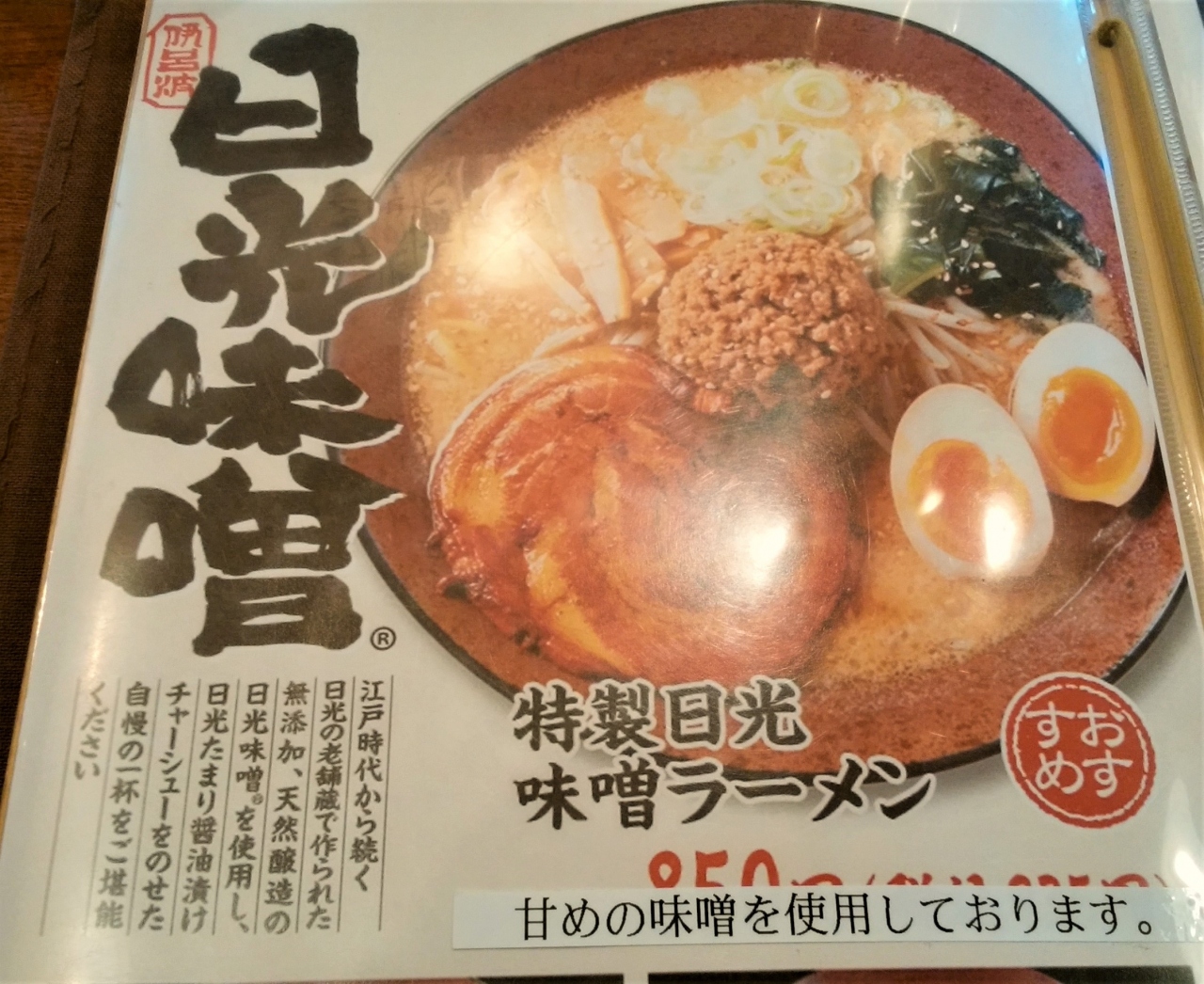 日光味噌を使ったラーメンを提供するお店です。