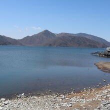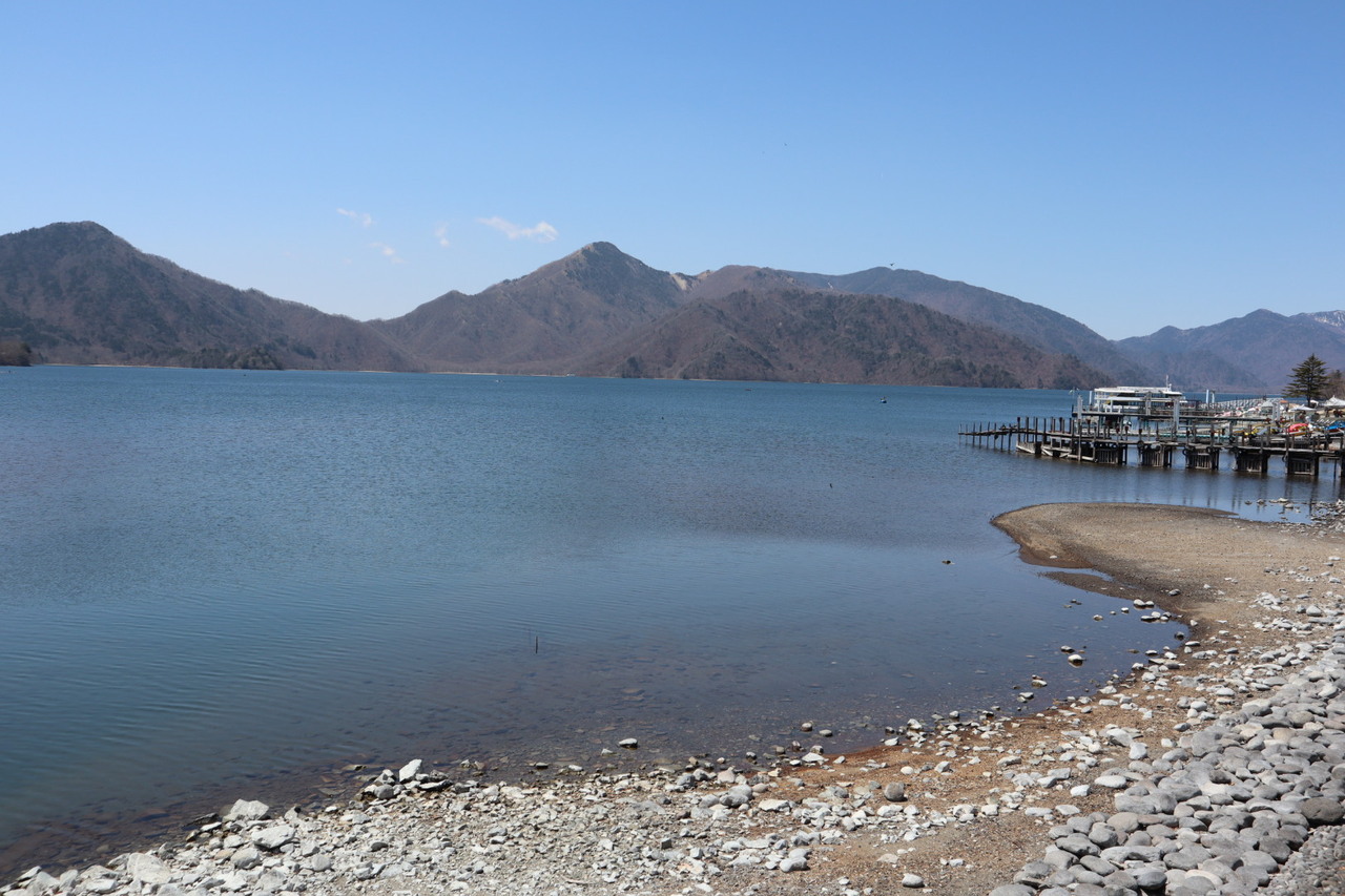 中禅寺湖バス停から遊覧船乗り場までの川沿いを10分ほどを歩いて移動しました。
