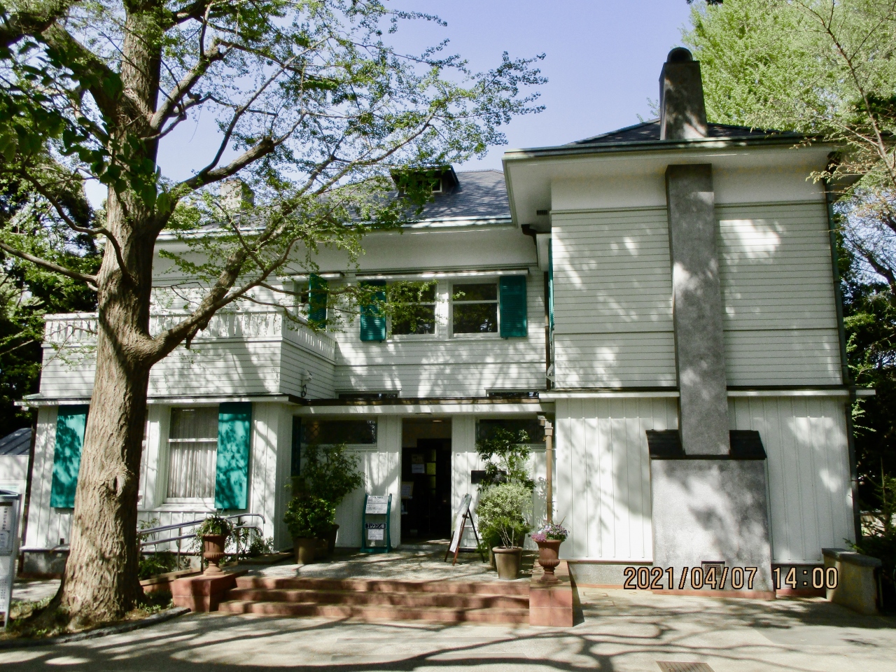 山手の洋館を全て巡ることにして、港の見える丘公園からずっと歩いてきました。煙突や屋根窓のある白いモダンな洋館でした。高明な建築家が手掛けていて、スイス人の生糸貿易商の邸宅だったものをこの公園内に移築しているそうです。