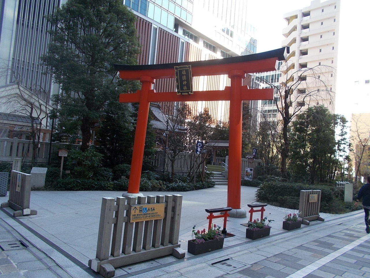 この福徳神社 (芽吹稲荷)は日本橋の中では数少ない緑の空間の中にあります。地下鉄東京メトロ銀座線三越前駅から東に5分程度の場所にあります。コレド室町2の北側で道を挟んであります。この神社は平安時代の創建です。江戸時代にはこの神社で富くじが行われたのです。庶民の町の日本橋ならではの神社です。