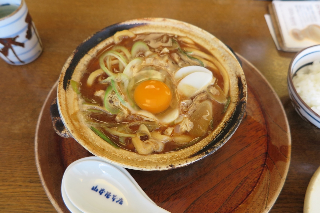 山本屋本店が大好きで、名古屋へ行く度に毎回のように利用しています。ただ交通面から大門本店に行くことができずにいたのですが、今回の「中村公園」見学の機を生かして利用することができました。お店が独立店舗でなかったのが少し意外でした。店内デザインは山本屋本店そのものですが、テレビが点けられていたことが特徴といえば特徴でしょう。人出をかける山本屋本店ですから、厨房前には5人のホール係が待機、サービスに余念がありません。味はもちろん、接客も安心の山本屋本店宗家でした。