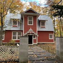 朱色が鮮やかで、紅葉の季節と相まって、芸術の森にふさわしい雰囲気の邸宅でした。