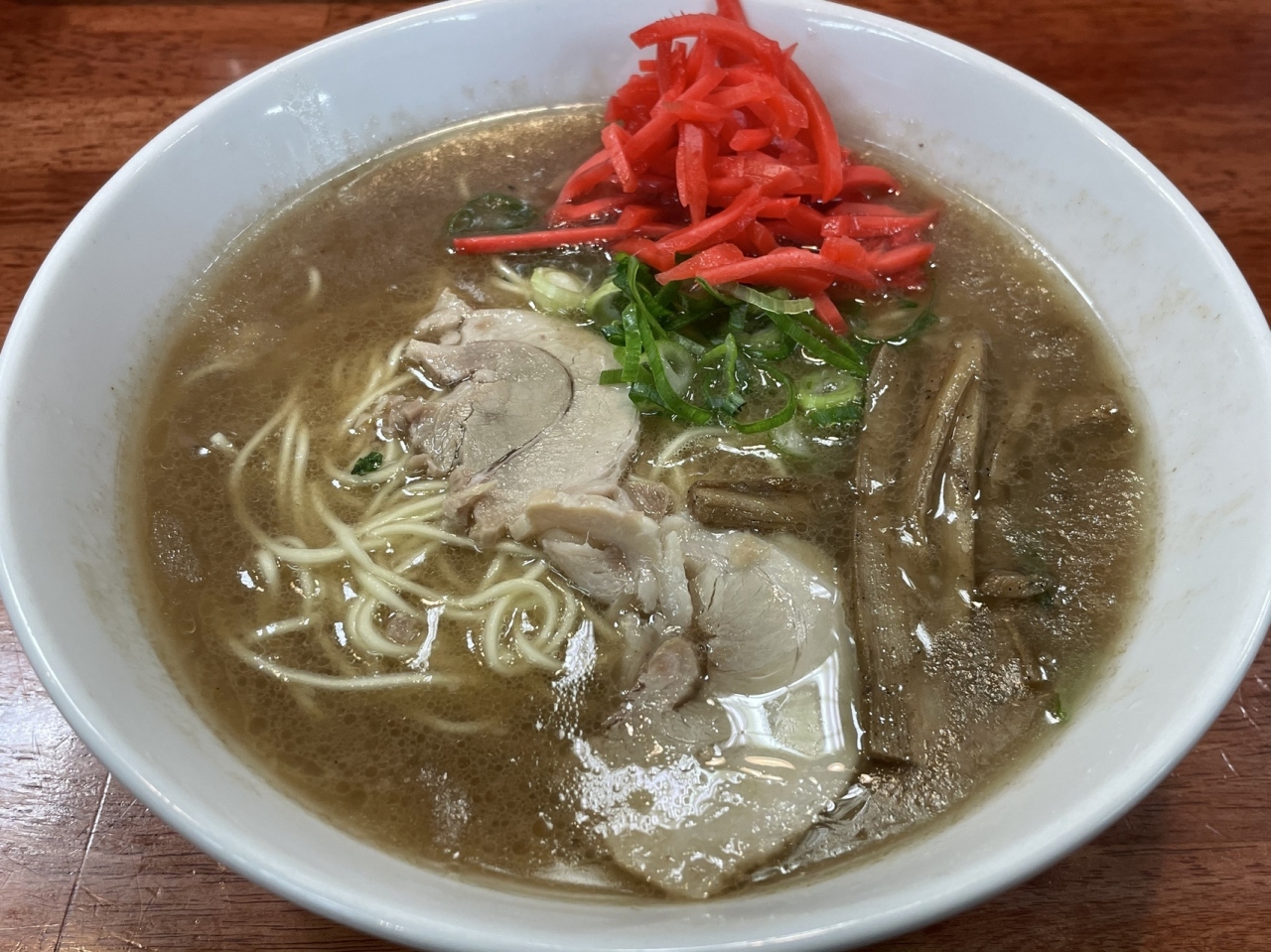 宇部新川駅前にある地元チェーンラーメン店です。ラーメンはとんこつです。22時過ぎ、飲んだ後のシメと思われる若手中心の客層でした。とんこつスープは濃厚過ぎで、飲んだ後のシメの食事にはちょっと苦しかったです。