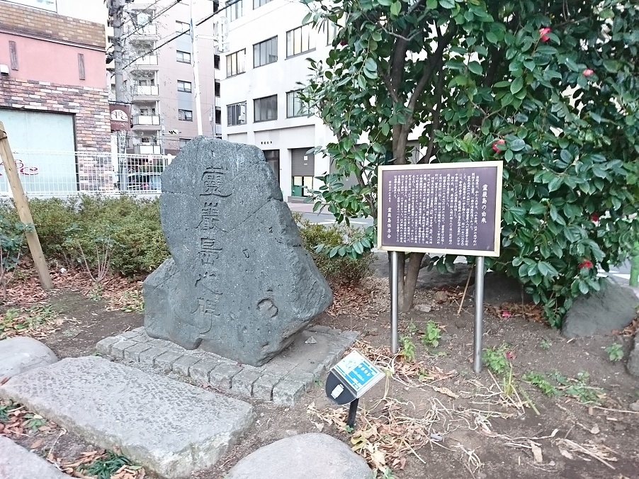 中央区新川1丁目の越前堀児童公園敷地内に霊巌島の碑が立っています。江戸時代の寛永元年(1624年)にこの辺りは埋め立てられて、霊厳寺が創建され、越前福井藩の藩主・松平忠昌が霊厳寺の南側に広大な浜屋敷を建てたそうです。霊厳寺は明暦の大火で全焼し、深川へ移転しました。この辺りの埋め立ては江戸時代だったのですね。