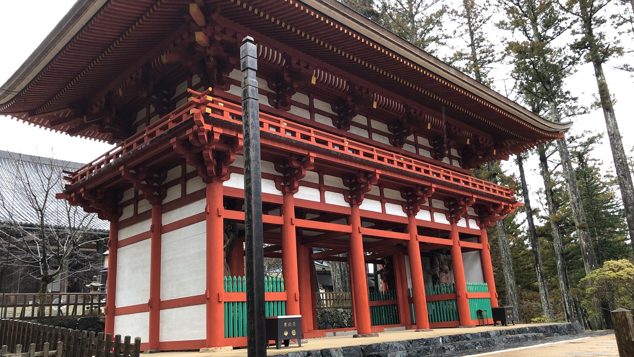 金剛峯寺・壇上伽藍の大きな門です。500mほど西に大門があり、大門に続く門という意味で中門(ちゅうもん)と呼ばれています。江戸時代の火事で焼けてしまいましたが、2015年の大法会に向けて再建されました。