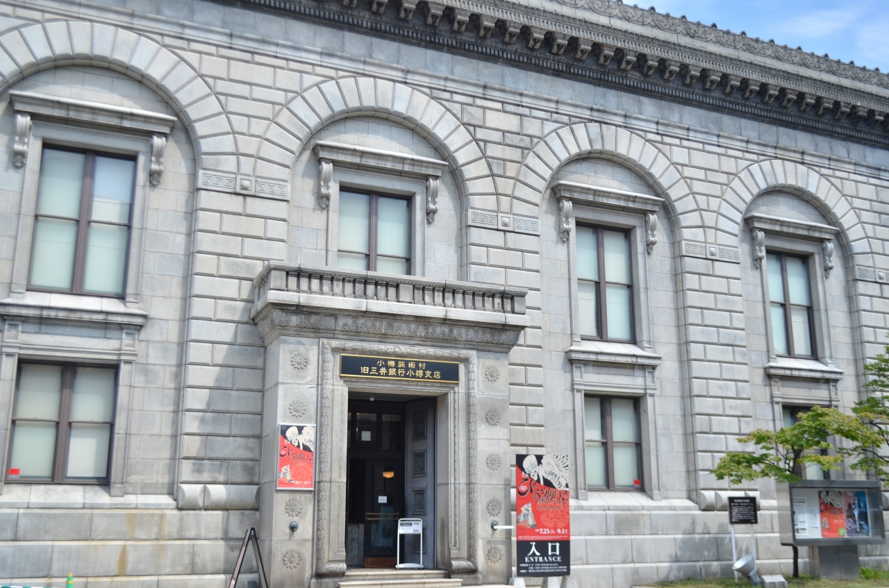 現在小樽芸術村として活用されている旧三井銀行小樽支店の建物。さすが旧財閥系の銀行だけあって重厚で立派だ。1927年、昭和2年に建設された。周辺には多くの元銀行の建物が並んでおり、ギリシャ神殿風の建物が多く、現在では寂れた雰囲気の建物が多いが、重厚なつくりはひときわ目立つ。芸術村として活用されているだけあり今でも古さを感じさせない