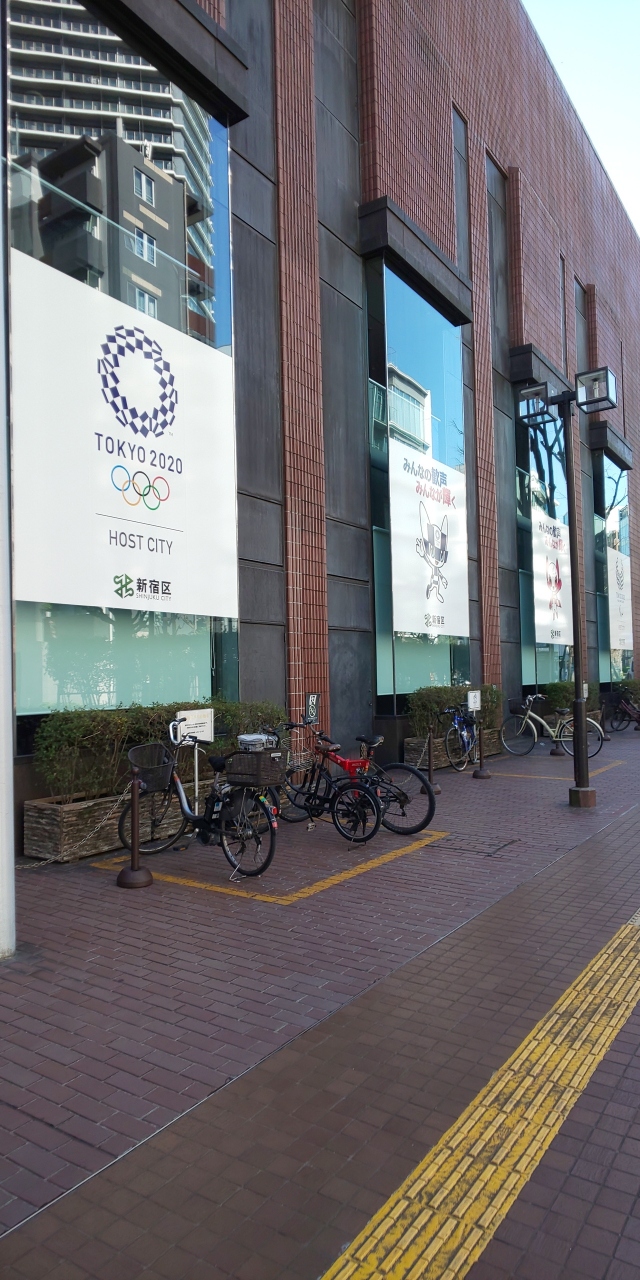 外観には東京オリンピックのキャラクターがでかでかと飾られていて、このコロナでどうなってしまうのやら。数年前はこれを見ては楽しみに感じていたのに今はとても虚しさを感じるものとなってしまってるように感じます。新宿区立の建物ということもあるのでいまさらはずせないですし、仕方がないですが。