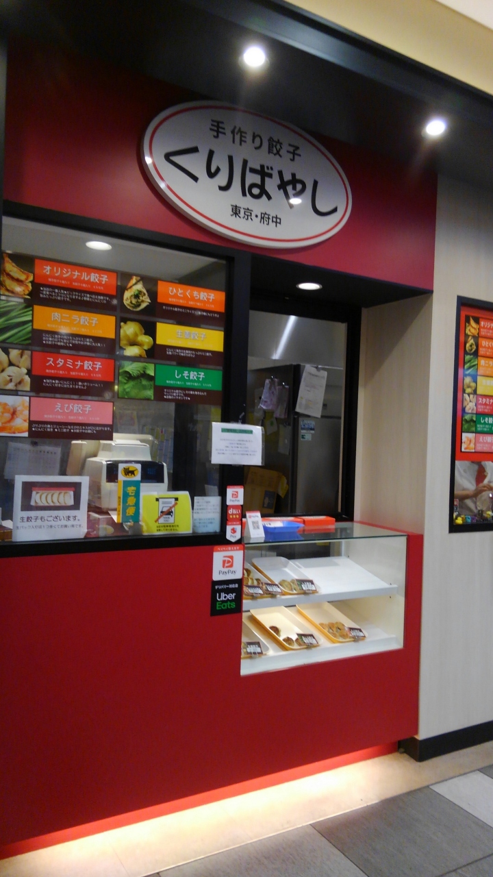 京王線の京王府中駅すぐ近くにはくりばやしが2店あります。こちらのくりばやしは、駅のすぐ近くに建つルシーニュの中に入っているくりばやしです、餃子のテイクアウトのお店です。餃子は自宅で作ることはないので時々利用しています。餃子の種類も色々あります。