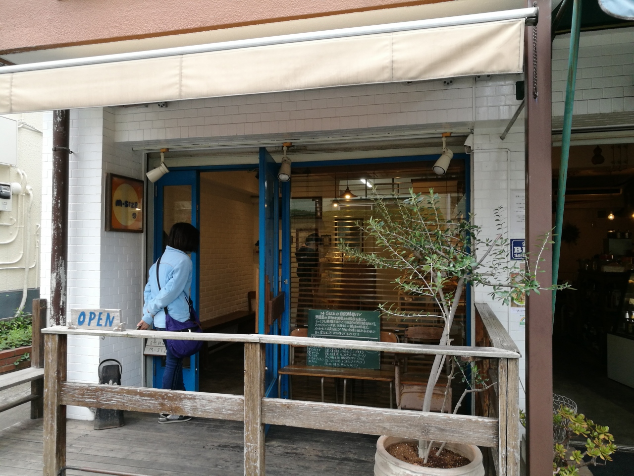学芸の商店街を下って行って右に少しはいったところにあります。入り口にはウッドデッキがあり、並びのおとなりの店の入り口はタイル張りで、植栽が多く、ここだけどこかのリゾート地の一角にあるお店かという雰囲気です。店内はレトロな感じで商店という感じの素朴な感じです。