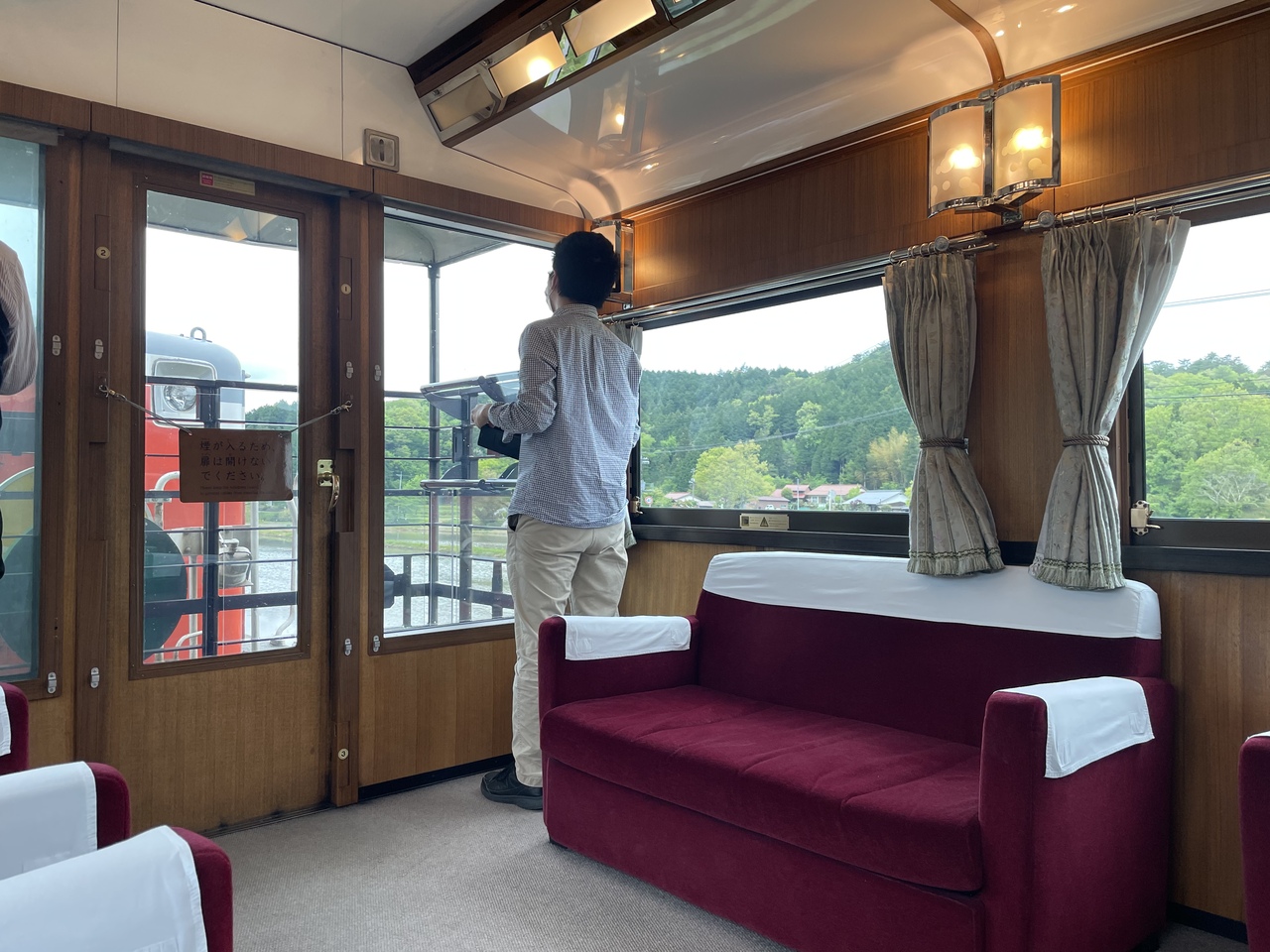 2021年はSLが点検検査のため、DD51牽引によるDLやまぐち号として運転されています。赤い凸型のディーゼル機関車はSLに負けず劣らず大人気です。見た目、ノスタルジーを感じる旧型風の客車も快適です。