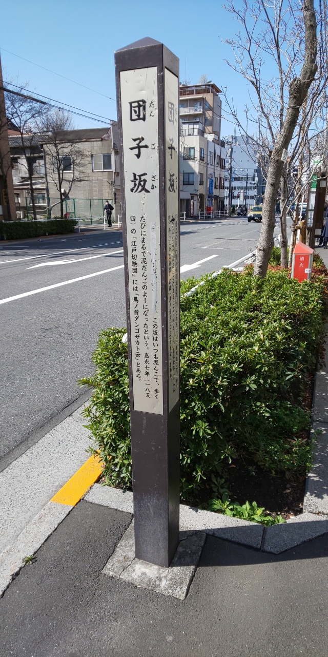 昔はここを歩くだけで泥だらけになったということから泥だんごから連想し団子坂と言われるようになりました。有名なお団子屋さんがあったとかそういうかんじかなと思って予想してましたが全く違ったので由来を見てびっくりでした。現在は街路樹や植樹もきれいに植えられた都内の道路で泥はまったく想像できません。