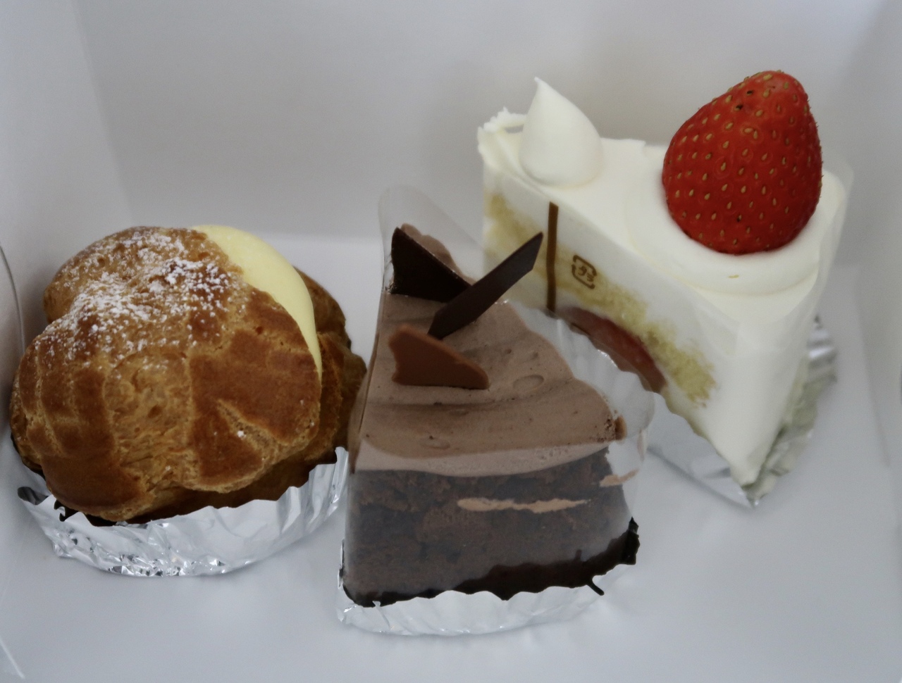 写真のシュークリームとの大きさ比較から見てわかるように、ケーキは小ぶりでした。