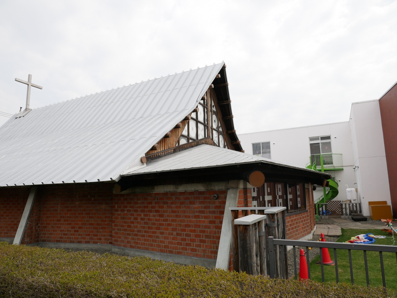 結構な住宅街の中にある教会ですが、チェコの建築家が設計したという個性的な建物の教会で、木造のようで、レンガみたいな部分もあり、三画っぽい建物でありながら、なんか直線的でもなく、妙に共感の持てるデザインの教会でした。