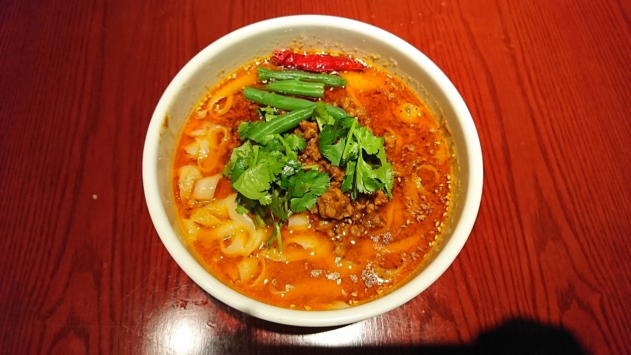 神田駅西口から徒歩5~6分程度、千代田区内神田1丁目にある西安中華料理レストランです。夕食でしびれる辛さのマーラー刀削麵をいただきました。具はパクチー、インゲン、肉ミンチで、真っ赤なスープとモチモチ刀削麵の一品です。スープは激辛に近く、私好みの辛さ。旨みや山椒の風味も感じ美味しくいただきました。かなりハイレベルのマーラー刀削麵の印象です。