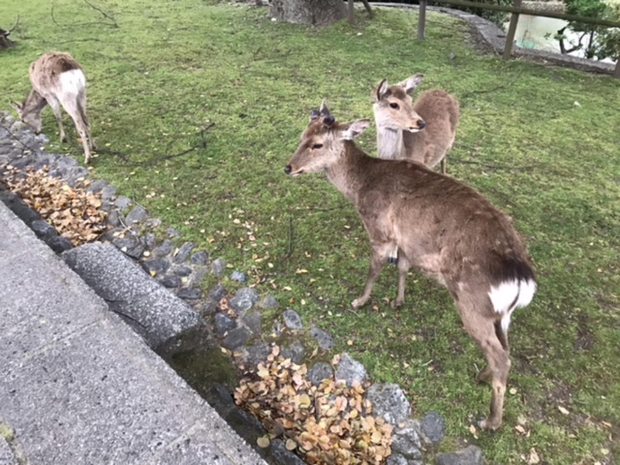 奈良の鹿は、近鉄奈良線近鉄奈良駅から徒歩5分ほど、奈良公園内で多数出没します。