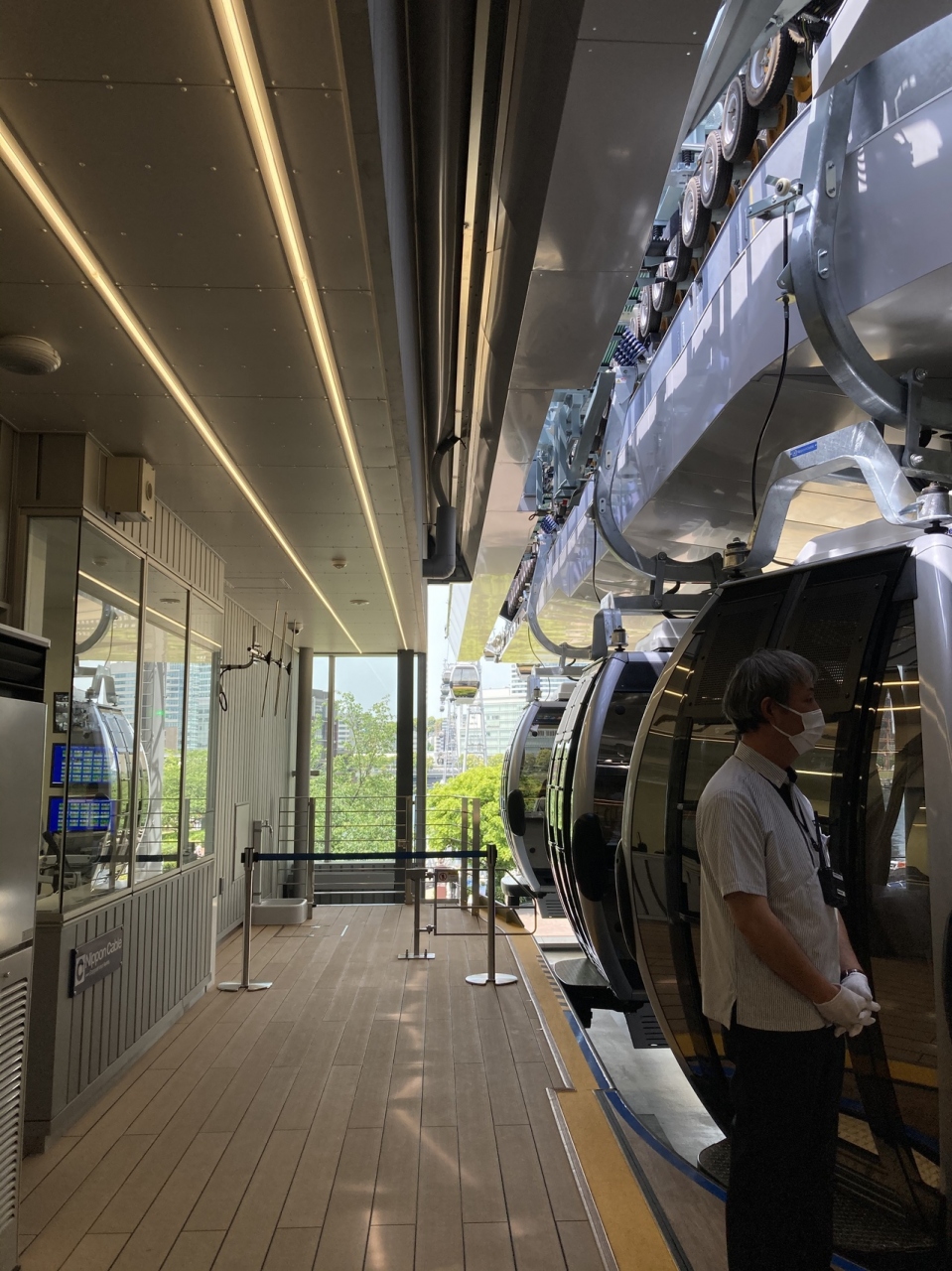 乗り物としてはローテクですが、デザインなのか街並みとの相性なのか、妙に未来感があって、下から眺めても面白かったです。
