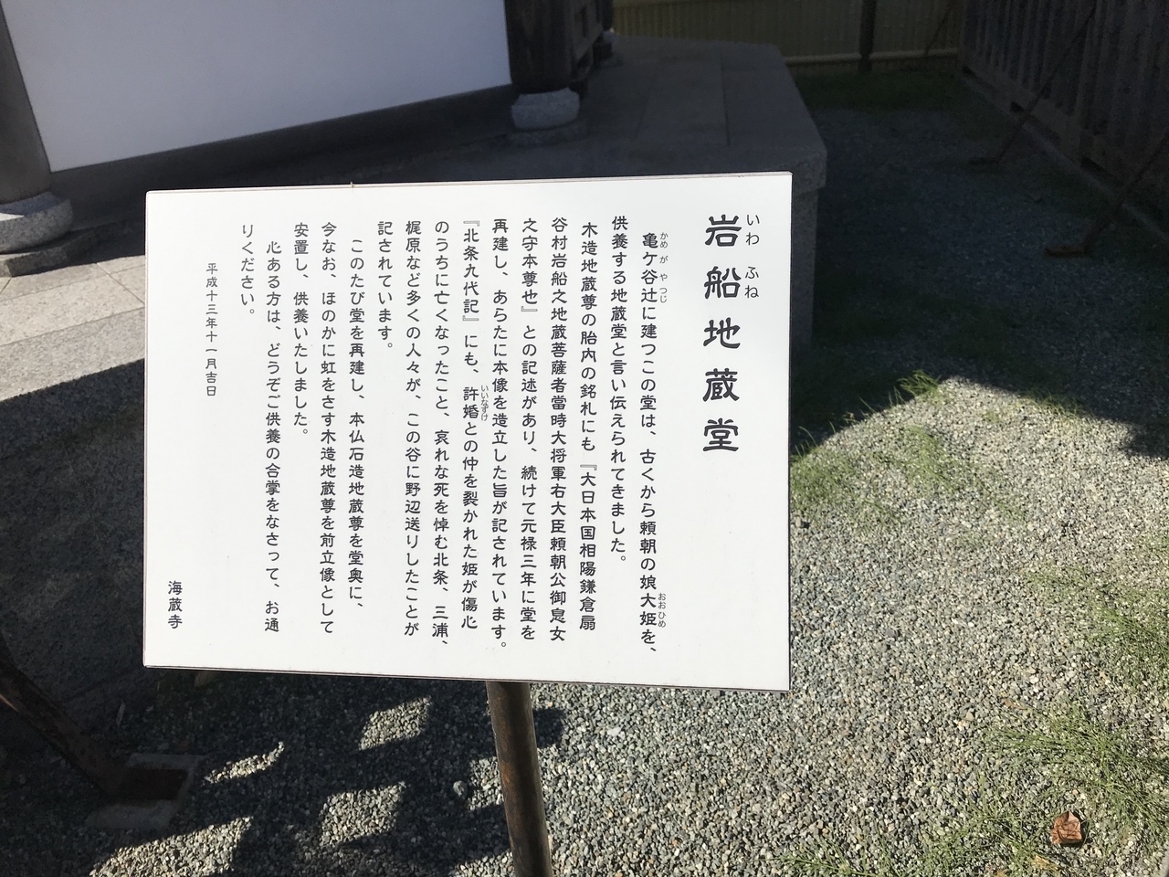 父頼朝により許婚との仲をさかれ、傷心のうち亡くなった源頼朝の娘大姫を供養する地蔵堂。