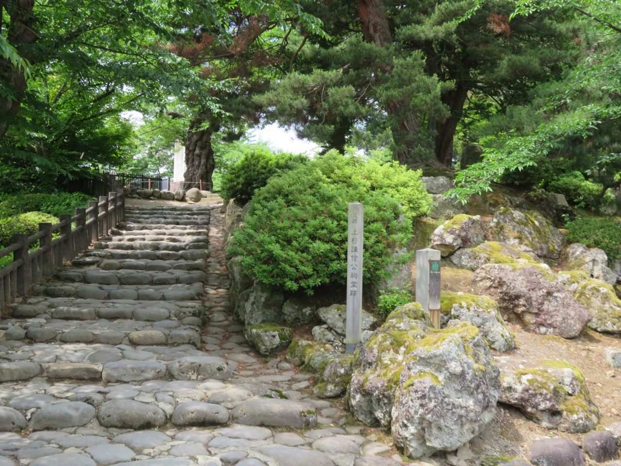 米沢城があったというのがほとんどわからないです。お城の周りにある御濠が残っているだけで、石垣なども残っていない状態です。現在は本丸があったところに上杉神社があり、上杉記念館や稽照殿があったりと多くの観光客が訪れていました。
