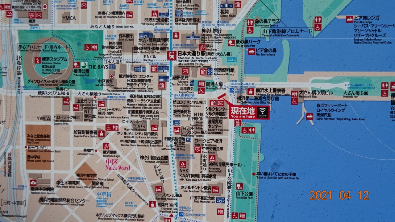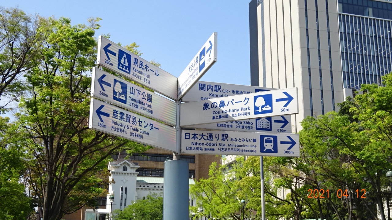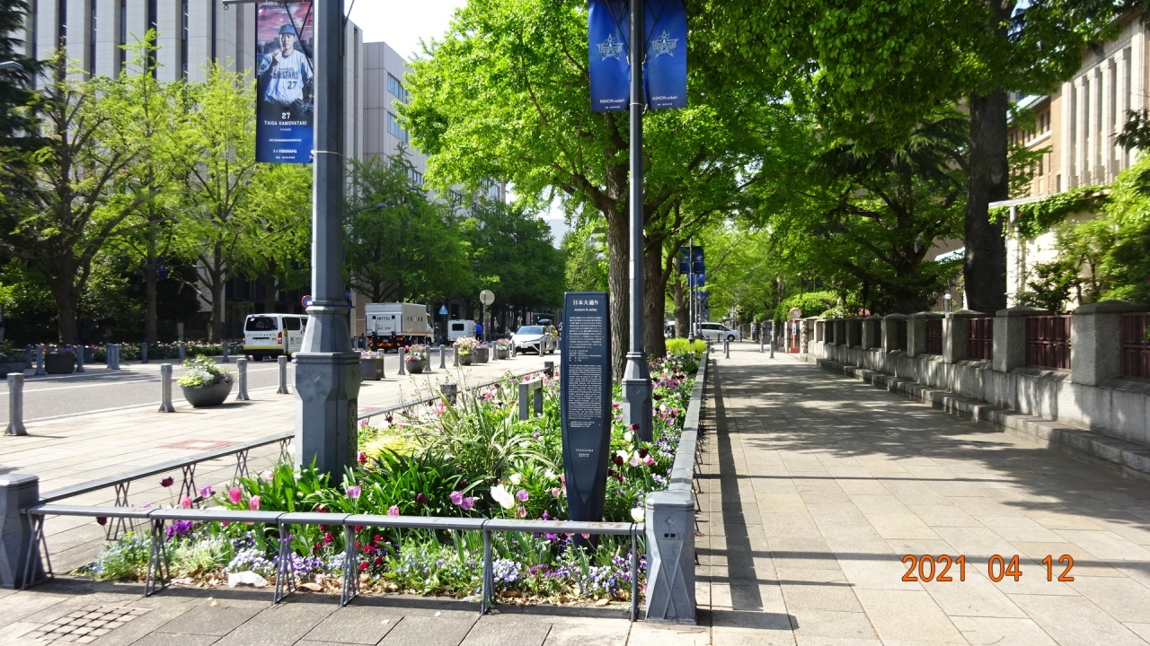 関内駅の反対側からの横浜公園のほぼ中央と象の鼻パークに向かう大きな通りです。