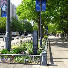 イチョウ並木の人気がある様ですが、私は歩道に有る花壇が好きです。