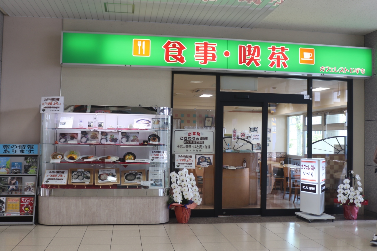 JR出雲市駅の改札を出たすぐ目の前にある駅ナカ食堂兼喫茶店です。店頭にはショーケースがあり、サンプルメニューも今では新鮮な感じです。本格的な出雲そばもいただけます。新聞もおかれ、列車待ちにお勧めです。