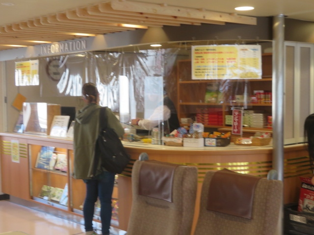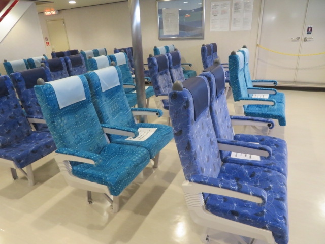 乗ったフェリーはフェリーあいで、空いていたのでゆっくりできました、椅子席、カーペット席があります、ドライバ―用には専用室がありました、船上からの眺めも少し楽しみました、わずかな時間でしたが久し振りの船旅でした。