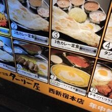 ターリー屋定食はカレー二種、ナン、ご飯、デザートと盛りだくさんで、ボリュームがあります。