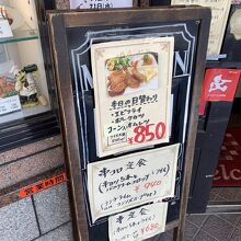 心斎橋筋商店街から脇道へ入ってすぐのところにある老舗洋食店。レトロな店構えにブルーの看板が爽やかなイメージです。