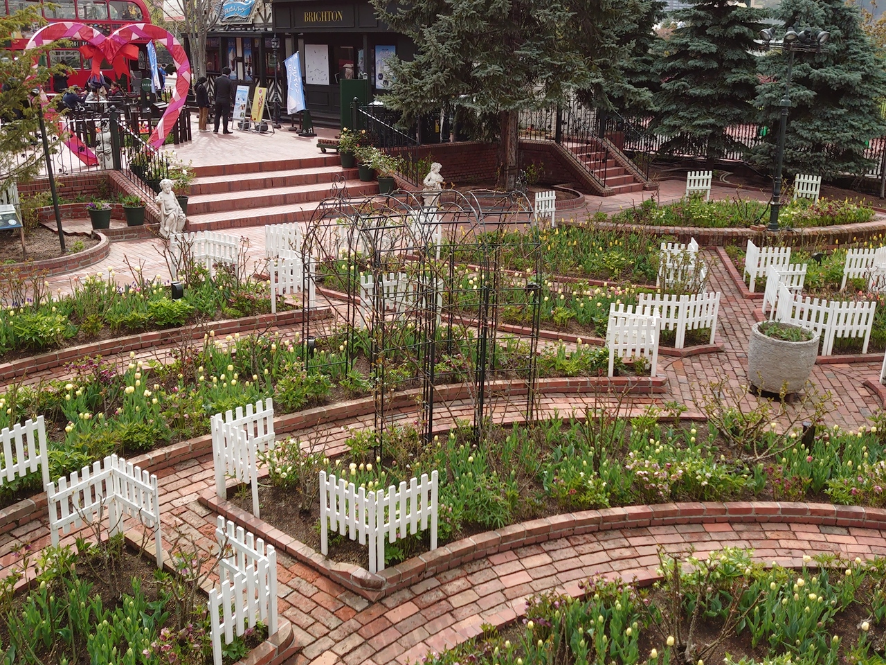 ゴールデンウィーク期間中ということだけあって来園しているほとんどのお客さんは家族連れとその子供達でした。今回来たら入り口の噴水は水が出ていて花壇のチューリップも蕾ではありますが今にも咲きそうな感じでした。