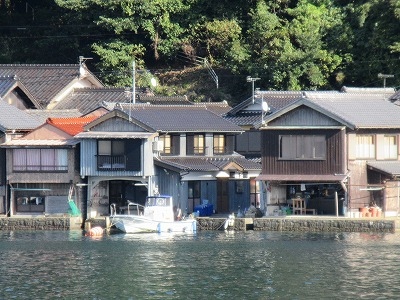 伊根湾に面した舟屋は面白い作りになっていて、船がそのまま1階に納まります。2階は住居や、漁や船の道具類があったり、作業場になっているようです。