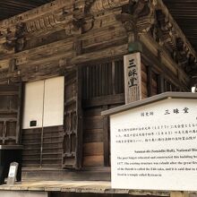 金剛峯寺の中にある小さなお堂です。済高というお坊さんが建て、この済高が「理趣三昧」という儀式を行なっていたことから、三昧堂(さんまいどう)という名前になりました。お堂の前には、西行が植えたとされる「西行桜」もあります。