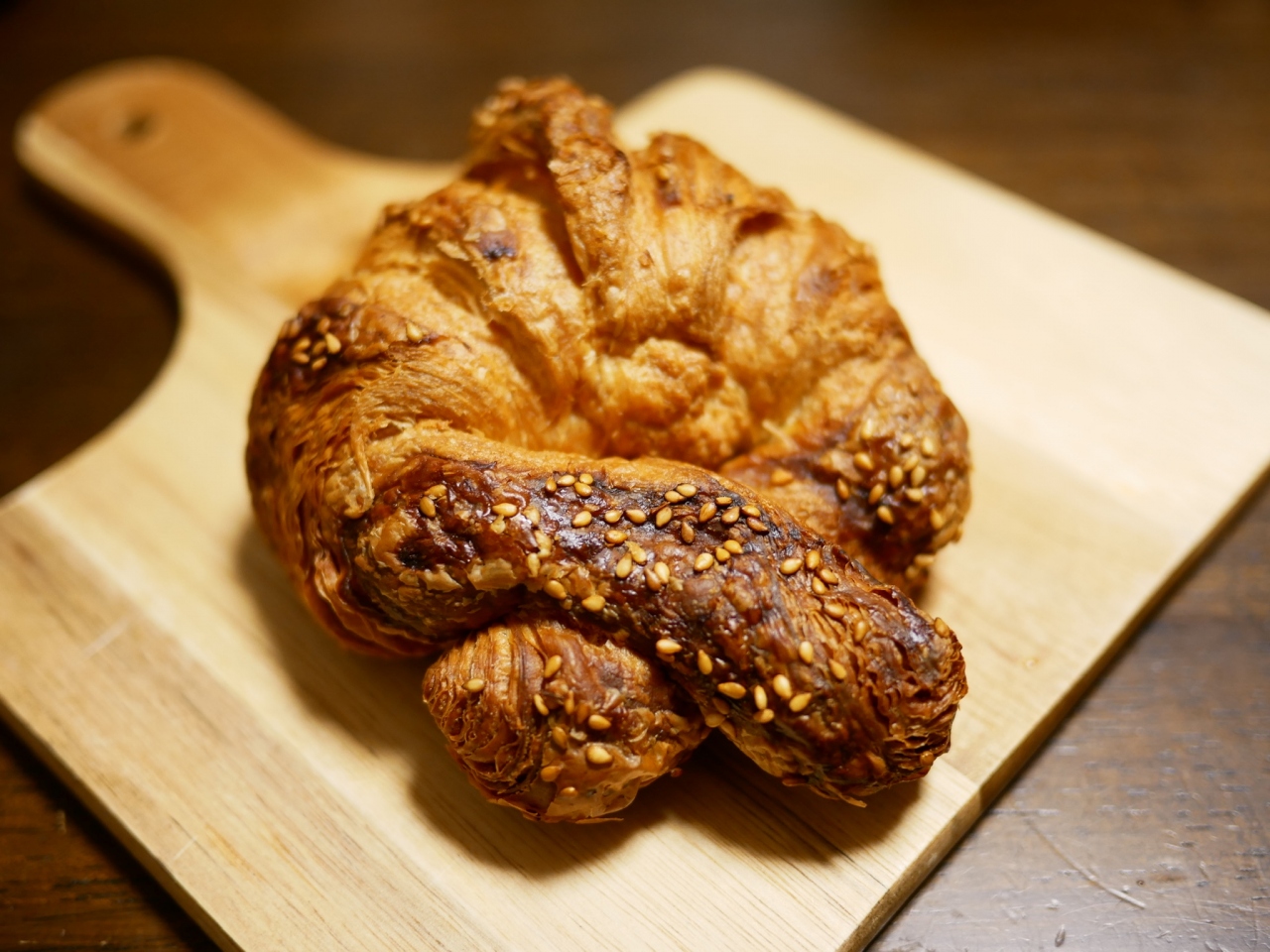 ---塩がしっかり効いていて、生地の層がぎゅっと詰まった感じのクロワッサンですが、香ばしく美味しいです。メープルシロップとの相性も良く、朝食として頂きました。
