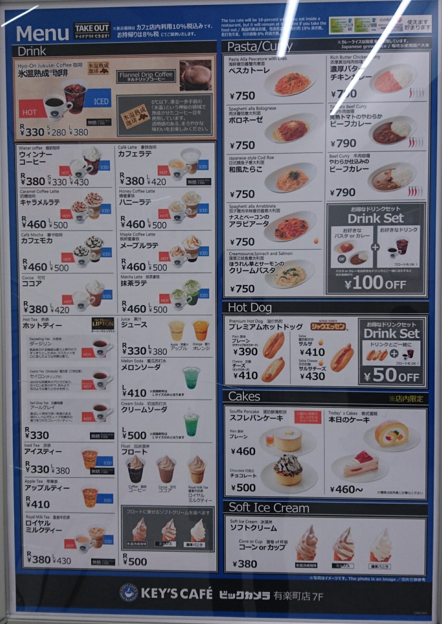 ビックカメラ有楽町店の10時オープンと同時に入店してエレベーターで7階へ。店内は隣のApple製品修理サービスと繋がっている。ホットドッグのサルサとアイス珈琲を注文。店内は広くないが穴場のカフェ。もちろんビックカメラのポイントが付き、ビックカメラのWi-Fiも使える。