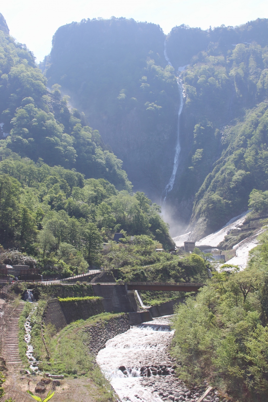 落差日本一の称名滝の右側に並んで流れている、こちらも落差500メートルほどの滝です。水の流れは細く、雪どけ時期や大雨の後にしか見られないといいます。立山の称名滝探勝路を進んでいくと正面に見られました。