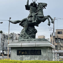 南武線の分倍河原駅前広場のロータリーの中にあります。鎌倉時代に多摩川河畔の地元であった幕府軍と新田義貞率いる反幕府軍の分倍河原の戦いを記念したものです。馬に乗って軍を率いる非常に躍動感が溢れる像です。