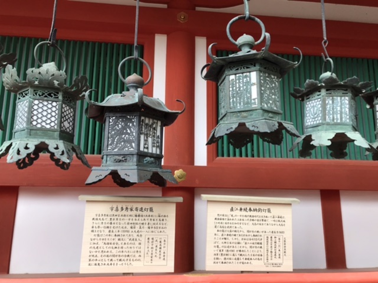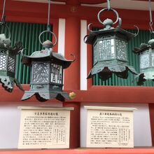 500円払うと回廊内を散策することができます。戦国大名の宇喜多秀家や直江兼続、江戸幕府5代将軍徳川綱吉などが奉納した釣燈籠が見られます。